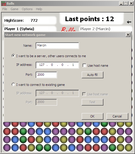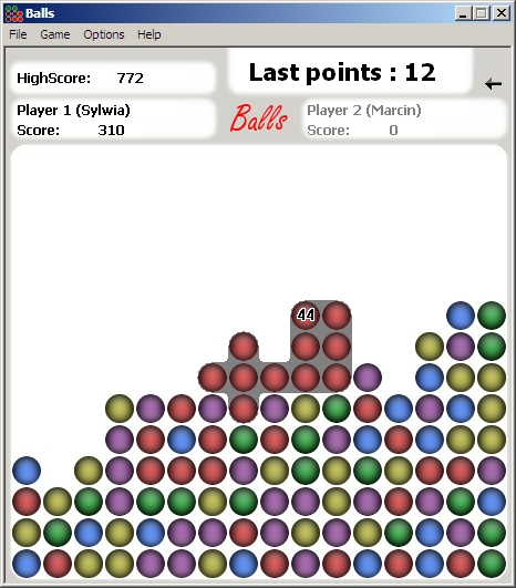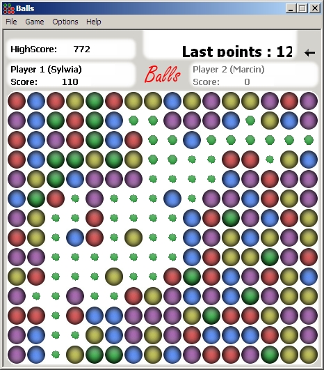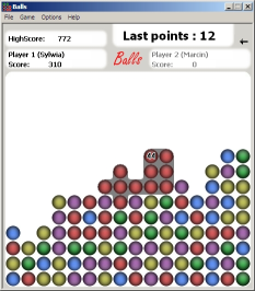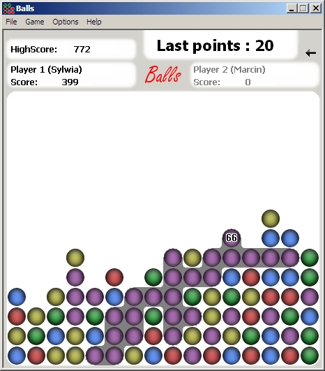 In this game you have to hit balls of the same color that are located close to each other.